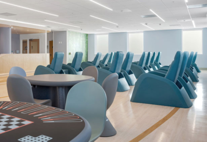 Reinforced Skye Plus and modular Ohio Plus offer relaxed seating throughout the building, while Snug Plus modular units...
